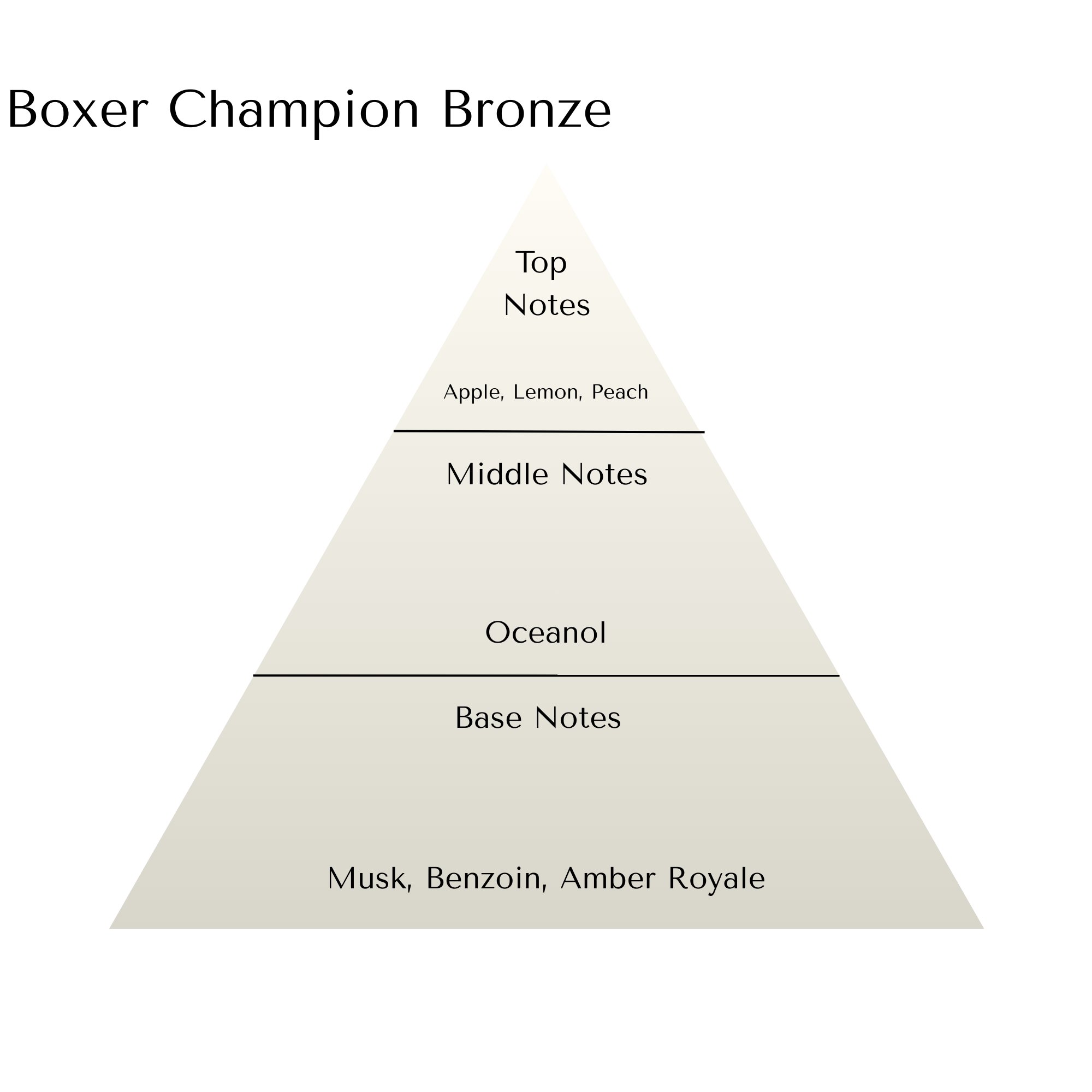 Boxer Champion Bronze is a study in discipline — bright ambition sharpened by resolve. It opens with a crisp strike of apple and lemon, clean and invigorating, softened by the sun-ripened sweetness of peach. The first impression is energizing yet controlled, like the quiet focus before the bell rings.